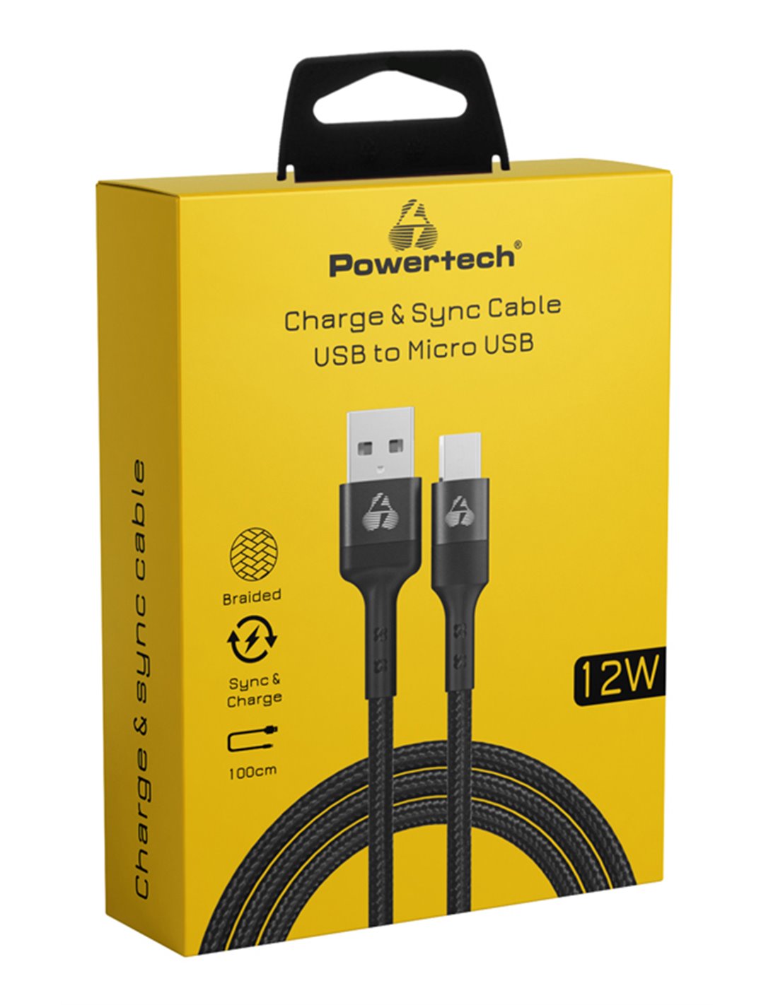 POWERTECH καλώδιο USB σε Micro USB PTR-0125, 12W 2.4A, copper, 1m, μαύρο