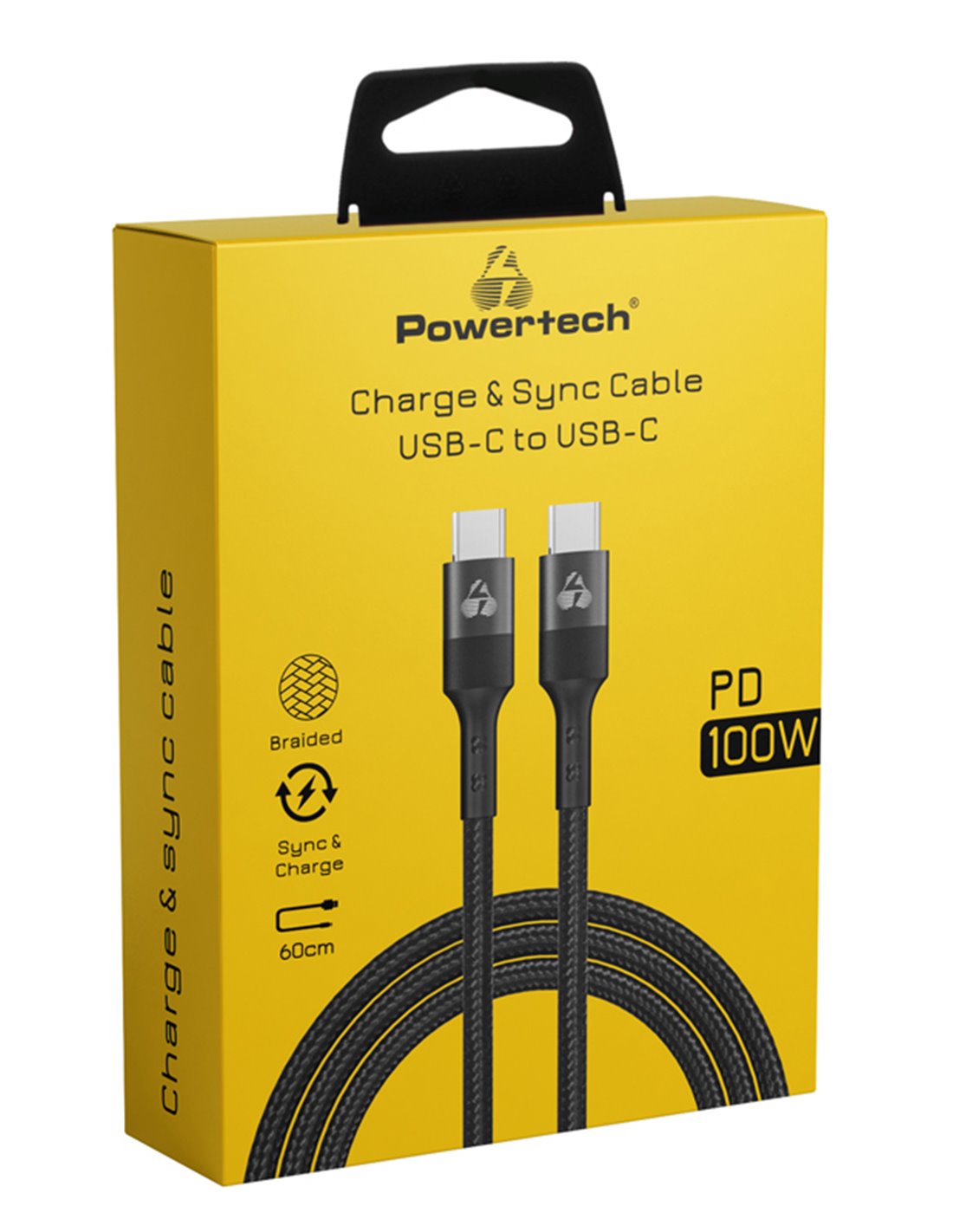 POWERTECH καλώδιο USB-C PTR-0133, PD 100W, copper, 60cm, μαύρο