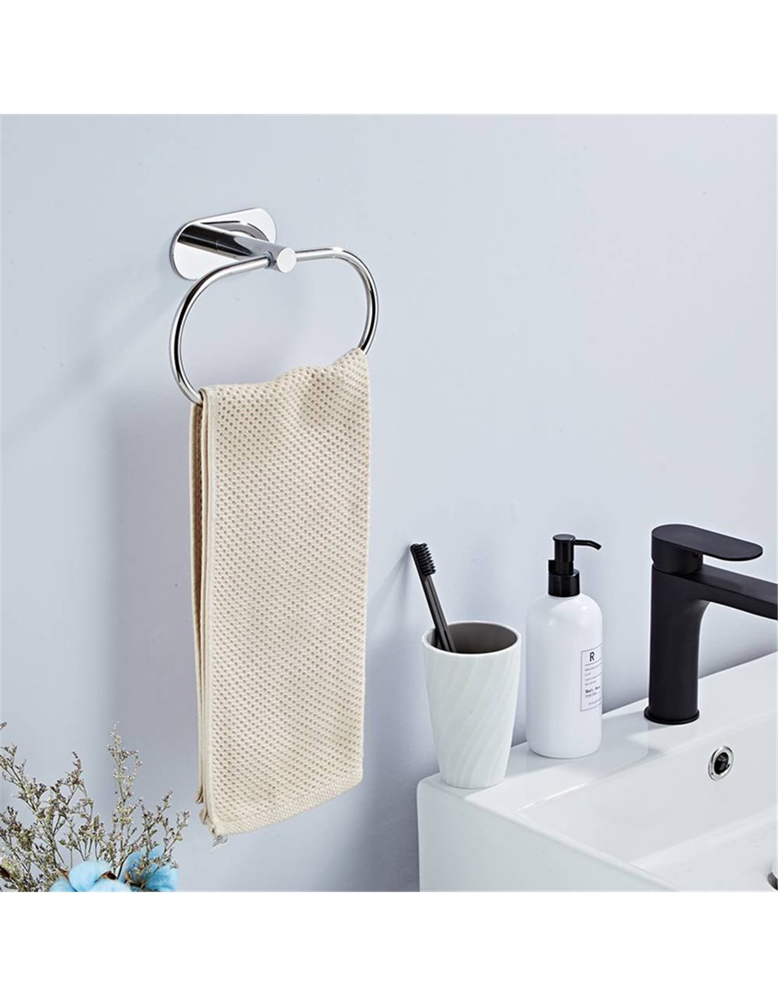 Κρεμάστρα μπάνιου και κουζίνας ιδανική για τοποθέτηση πετσετών. Το σώμα της κρεμάστρας μπορεί να μετακινηθεί πλήρως προς τα επάνω και κάτω. Τοποθετείται σε οποιαδήποτε επίπεδη επιφάνεια του τοίχου με αυτοκόλλητο.
