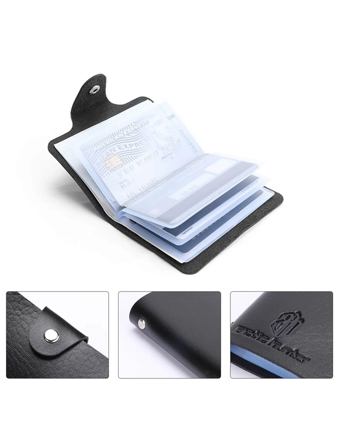 Θήκη καρτών, κατασκευασμένη από συνθετικό δέρμα. Διαθέτει 10 διάφανες θέσεις για την αποθήκευση των καρτών σας.