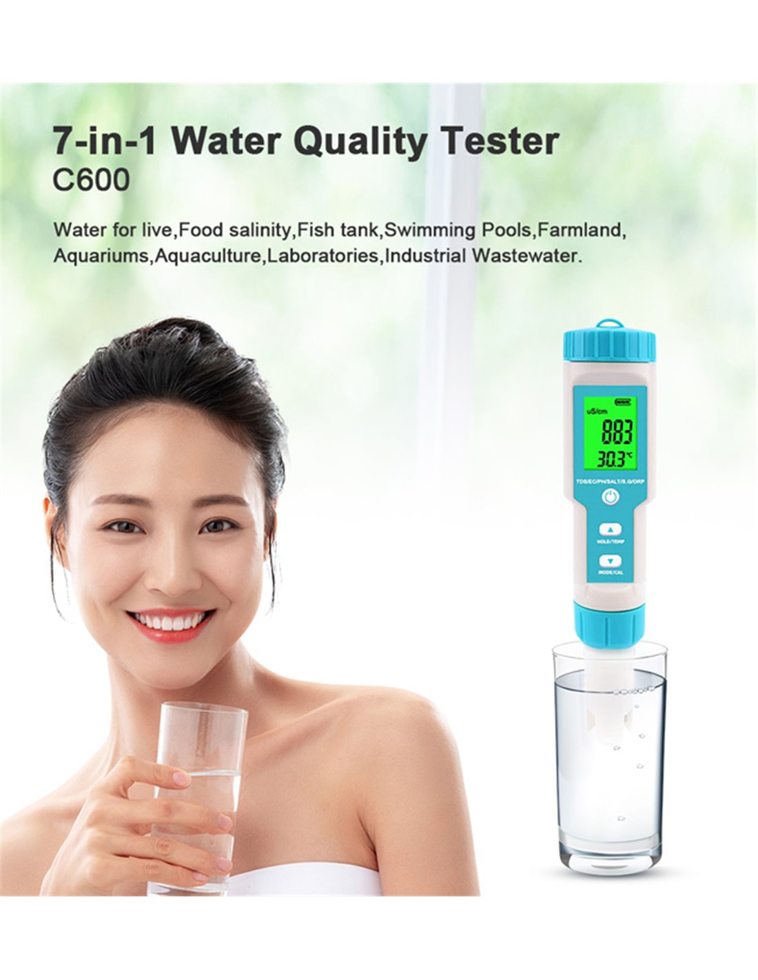 Το C-600 είναι tester ποιότητας νερού για την μέτρηση TDS, EC, PH, αλατιού, S.G, ORP και θερμοκρασίας. Είναι ιδανικό για τον έλεγχο του νερό σε πισίνες, υδρομασάζ, εργαστήρια, ενυδρεία, νερό βρύσης κ.λπ.