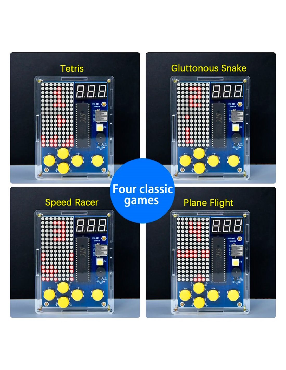 51 microcontroller Game Boy παιχνιδομηχανή της Keyestudio για Arduino. Διαθέτει 4 κλασσικά παιχνίδια (Tetris, Gluttonous snake, Speed racer, Plane flight). Τροφοδοτείται με 4 AA μπαταρίες (δεν συμπεριλαμβάνονται) ή με καλώδιο USB (συμπεριλαμβάνεται)