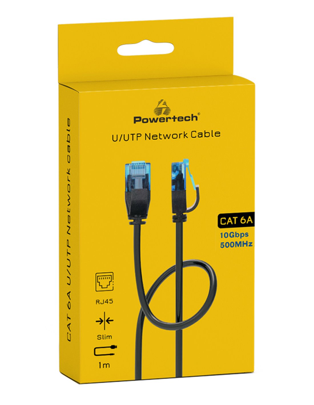 POWERTECH καλώδιο δικτύου PTR-0142 Cat 6a U/UTP, copper, slim, 1m, μαύρο