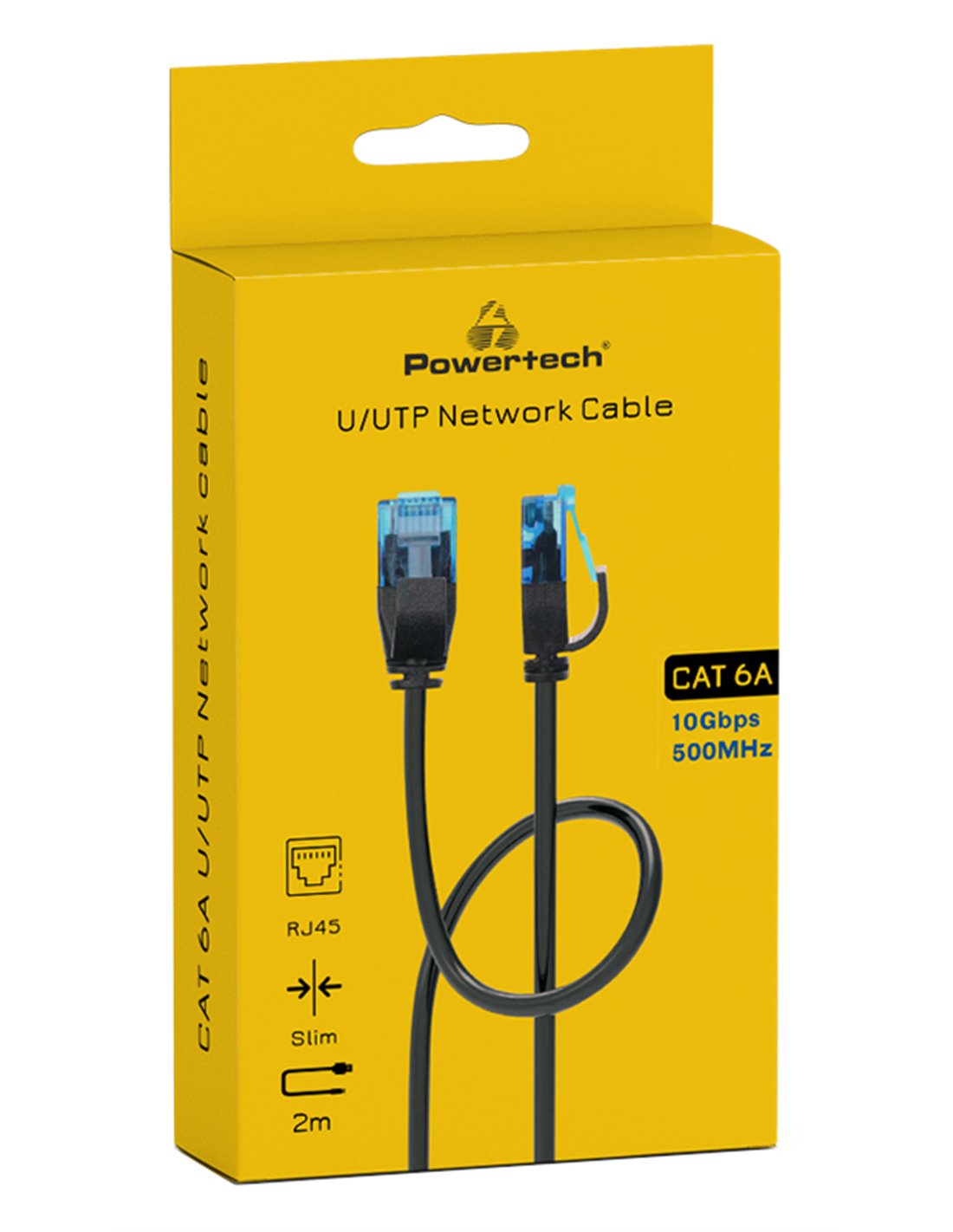 POWERTECH καλώδιο δικτύου PTR-0143 Cat 6a U/UTP, copper, slim, 2m, μαύρο