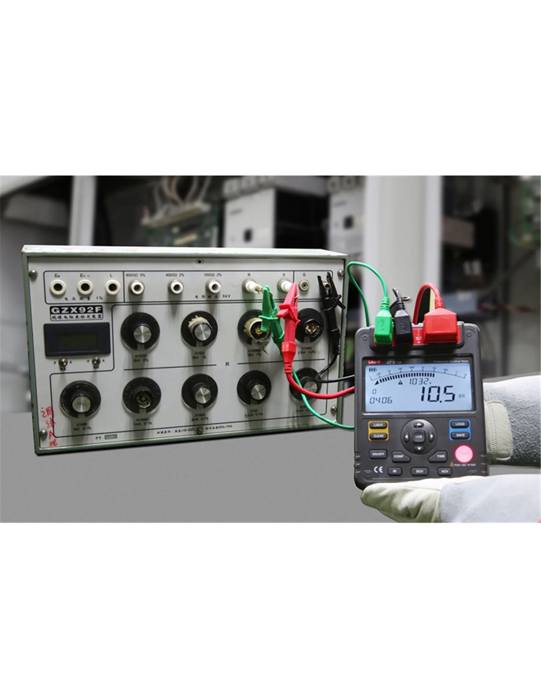Ο ψηφιακός μετρητής αντίστασης της σειράς UT513A μπορεί να μετρήσει την αντίσταση μόνωσης μεγάλων μετασχηματιστών, γεννητριών, κινητήρων υψηλής τάσης και άλλων. Τα δεδομένα μέτρησης μπορούν να αναλυθούν μέσω λογισμικού υπολογιστή. Το UT513A μπορεί να παράγει δοκιμαστική τάση έως 5 kV.
