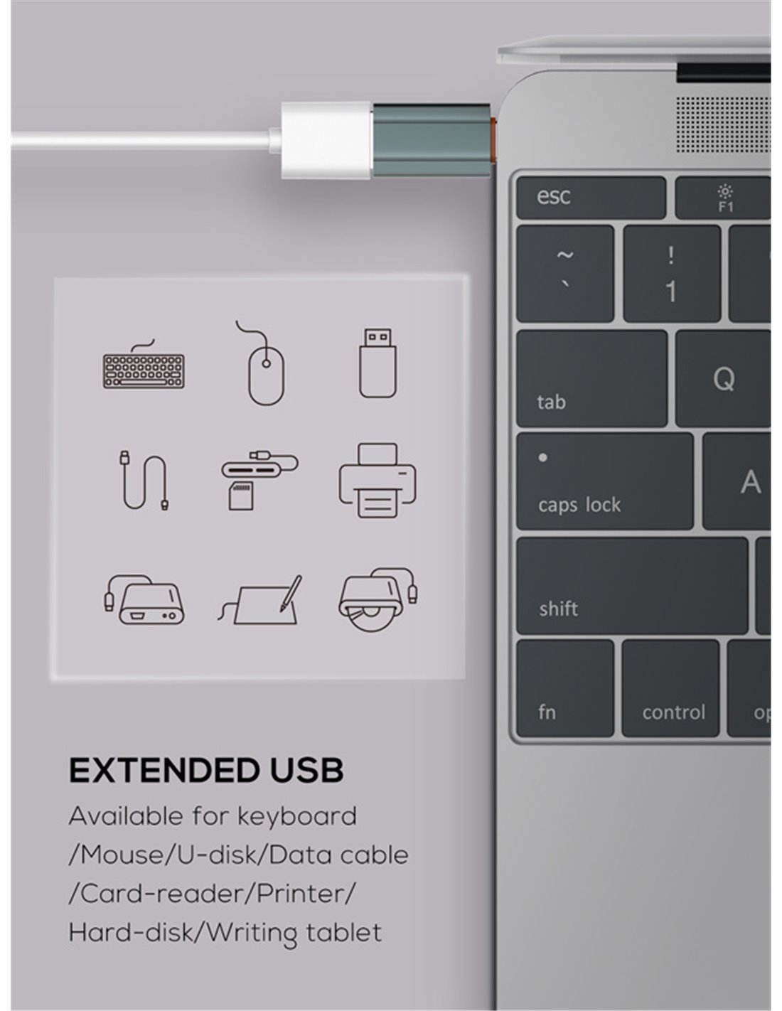 LDNIO αντάπτορας USB-C σε USB LC140, αρσενικό σε θηλυκό, γκρι
