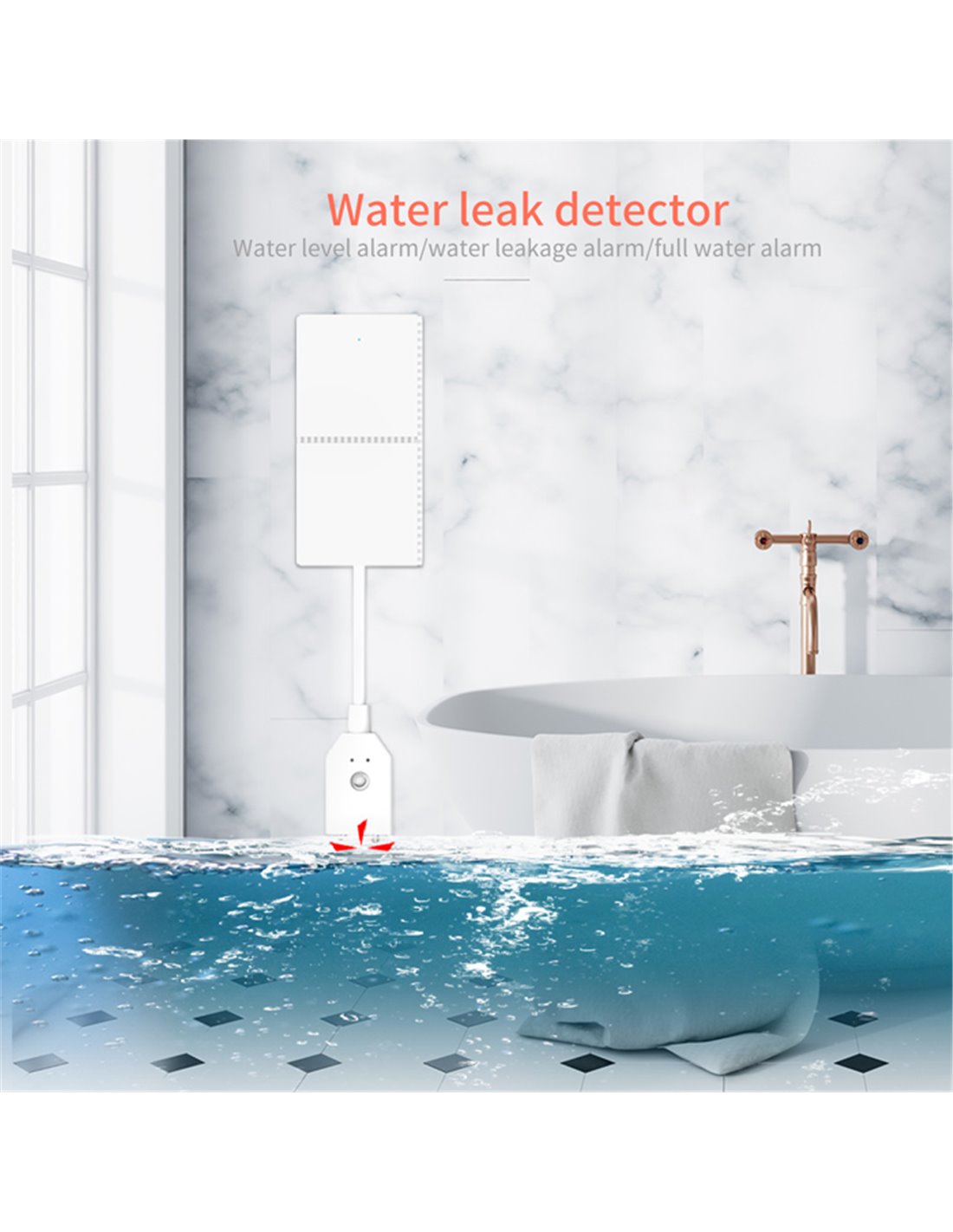 Ο ασύρματος ανιχνευτής πλημμύρας τοποθετείται κάτω από νεροχύτες, κοντά σε πλυντήρια και μπανιέρες κ.λπ. Ανιχνεύει αποτελεσματικά την διαρροή του νερού και στέλνει ειδοποίηση στο κεντρικό σύστημα συναγερμού.