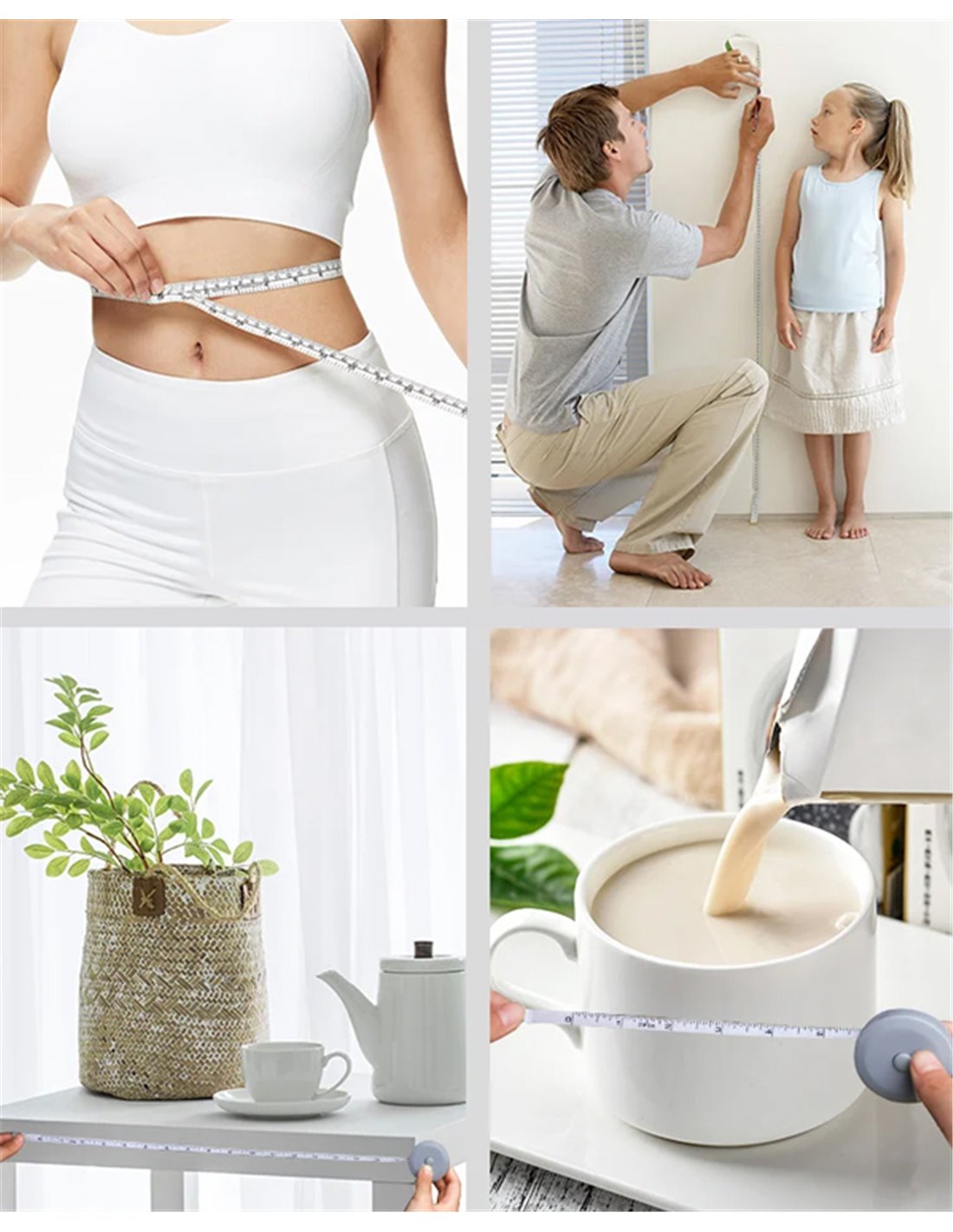 Μεζούρα διπλής όψεως σε ίντσες και εκατοστά, ιδανική για την μέτρηση του σώματος. Η ταινία κλειδώνει αυτόματα κατά την προώθηση ενώ διαθέτει και κουμπί για την εύκολη επαναφορά της στην αρχική θέση.