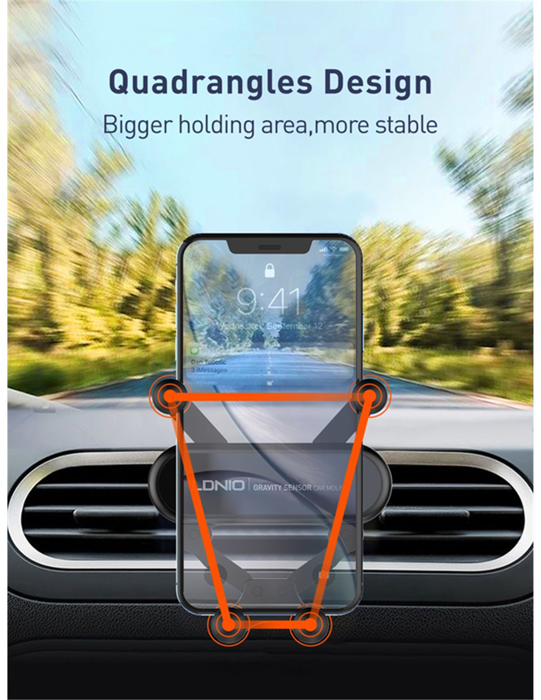 Συγκρατεί το smartphone σταθερό και ασφαλές με έξυπνο μηχανισμό συγκράτησης, ο οποίος ασφαλίζει το κινητό με το ίδιο του το βάρος της συσκευής, αποτρέποντας την πτώση του.