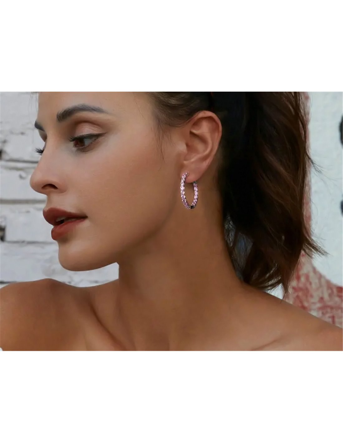 BAMOER σκουλαρίκια κρίκος YIE138-PK με κυβική ζιρκόνια, ασήμι 925, ασημί