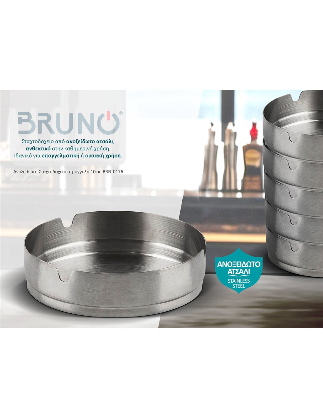 BRUNO ανοξείδωτο σταχτοδοχείο BRN-0176, στρογγυλό, 10εκ.