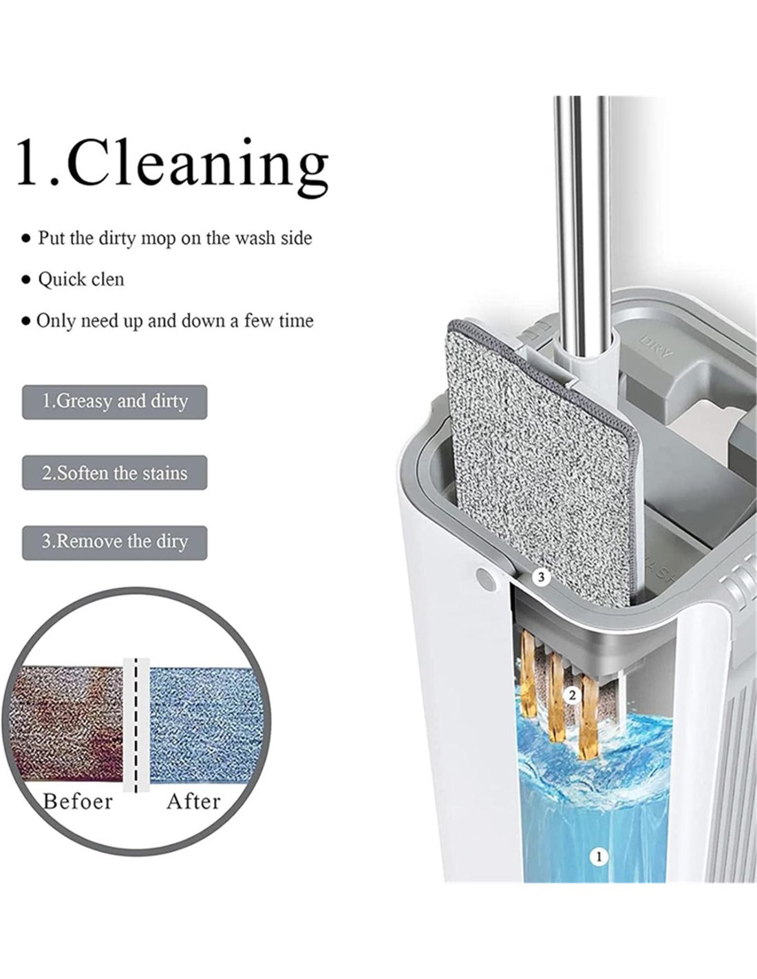 Ο κουβάς προσφέρει τη δυνατότητα για εύκολο και γρήγορο καθαρισμό, καθώς είναι εξοπλισμένος με διπλό θάλαμο, που σας επιτρέπει να πλένετε και να στεγνώνετε την παρκετέζα.