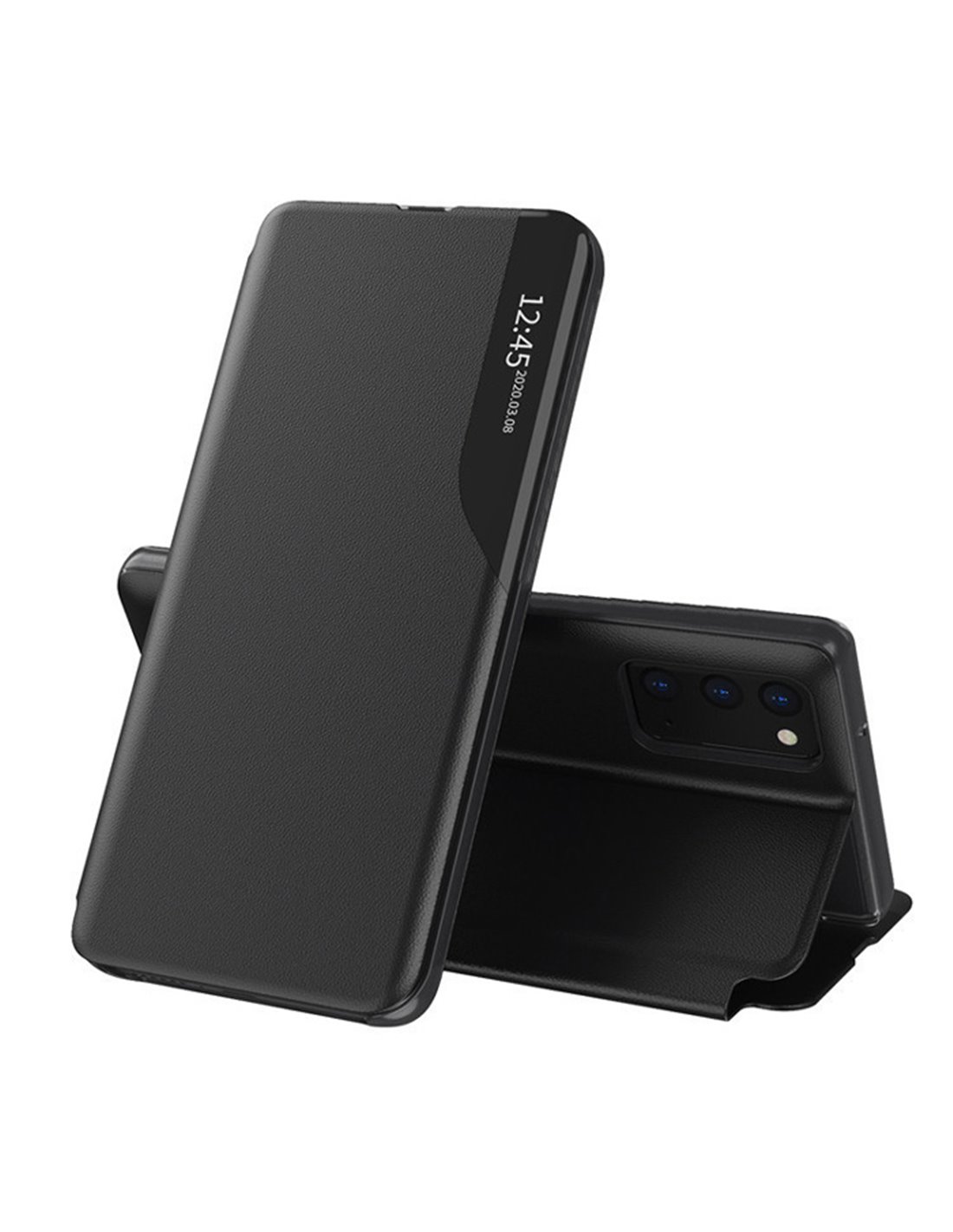 Θήκη TPU μαύρης απόχρωσης, τύπου book με ημιδιάφανο σημείο στο καπάκι ώστε να μπορείτε να βλέπεται την οθόνη του κινητού σας χωρίς να είναι απαραίτητο να ανοίξετε την θήκη. Διαθέτει μικρό εξόγκωμα περιμετρικά των καμερών, ώστε να μην έρχονται σε επαφή με τη επιφάνεια που ακουμπάτε το smartphone σας, για ακόμη μεγαλύτερη προστασία. Είναι κατασκευασμένη από ποιοτικό υλικό, με αντοχή στον χρόνο.