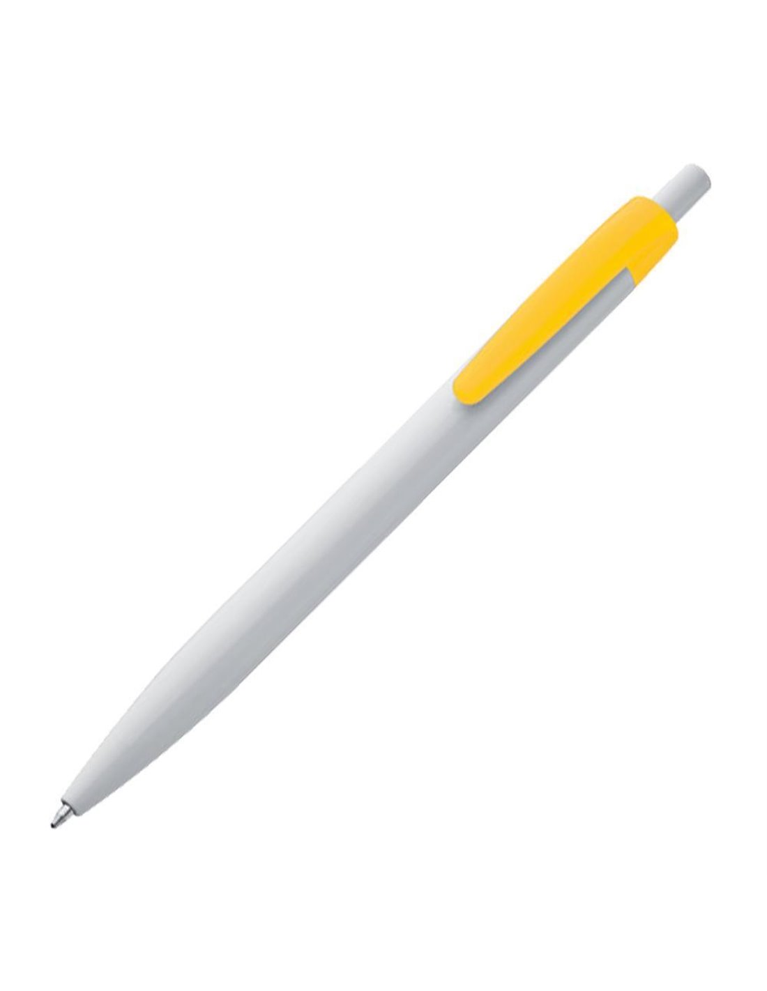 Μοντέρνο στυλό με μπίλια και μηχανισμό μπουτόν, με ανταλλακτικό με μελάνι μπλε. Το λευκό χρώμα του σώματος αναδεικνύει το χρώμα του κλιπ.