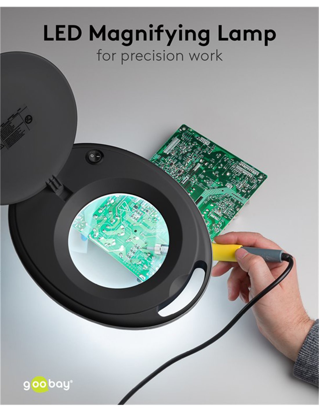 GOOBAY μεγεθυντικός φακός 64989 με σφιγκτήρα, LED, 3 διόπτρες, μαύρος