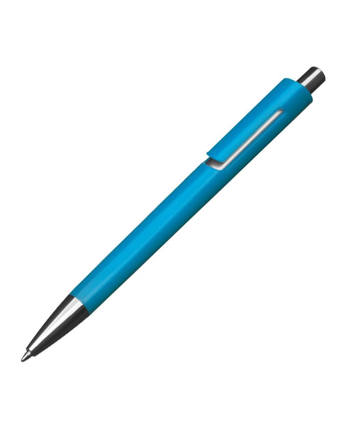 Πλαστικό στυλό με μπίλια, εξοπλισμένο με ανταλλακτικό jumbo με μελάνι μπλε χρώματος και ασημένιες λεπτομέρειες.