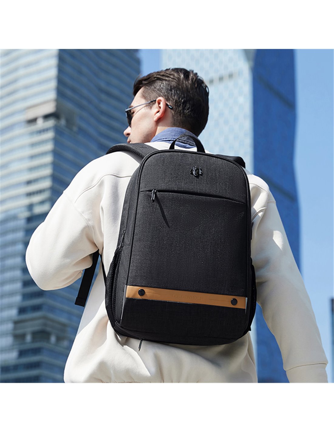 GOLDEN WOLF τσάντα πλάτης GB00375 με θήκη laptop 15.6", 19L, USB, μαύρη