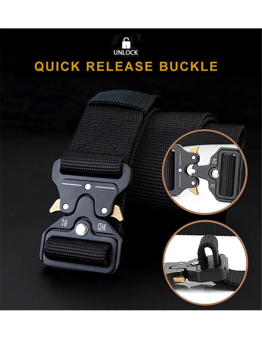 Ζώνη στρατιωτικού τύπου, εξαιρετικής αντοχής με μεταλλική πόρπη ταχείας απασφάλισης.