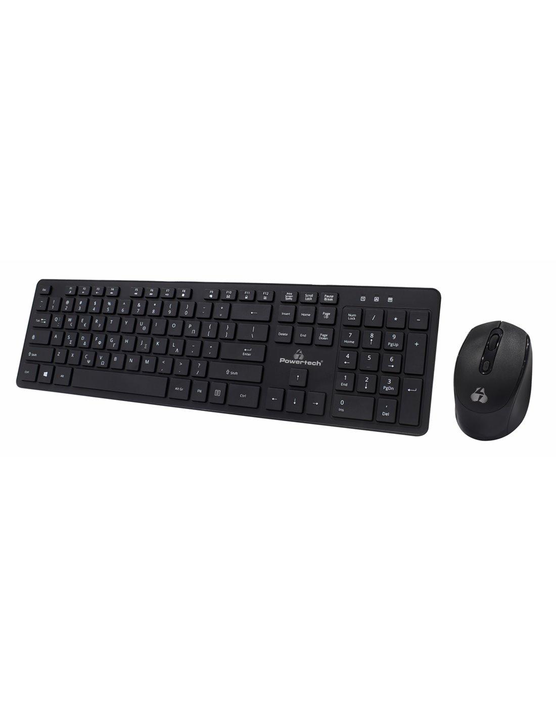 Set περιφερειακών για PC από την Powertech που αποτελείται από ασύρματο πληκτρολόγιο και ασύρματο οπτικό ποντίκι.