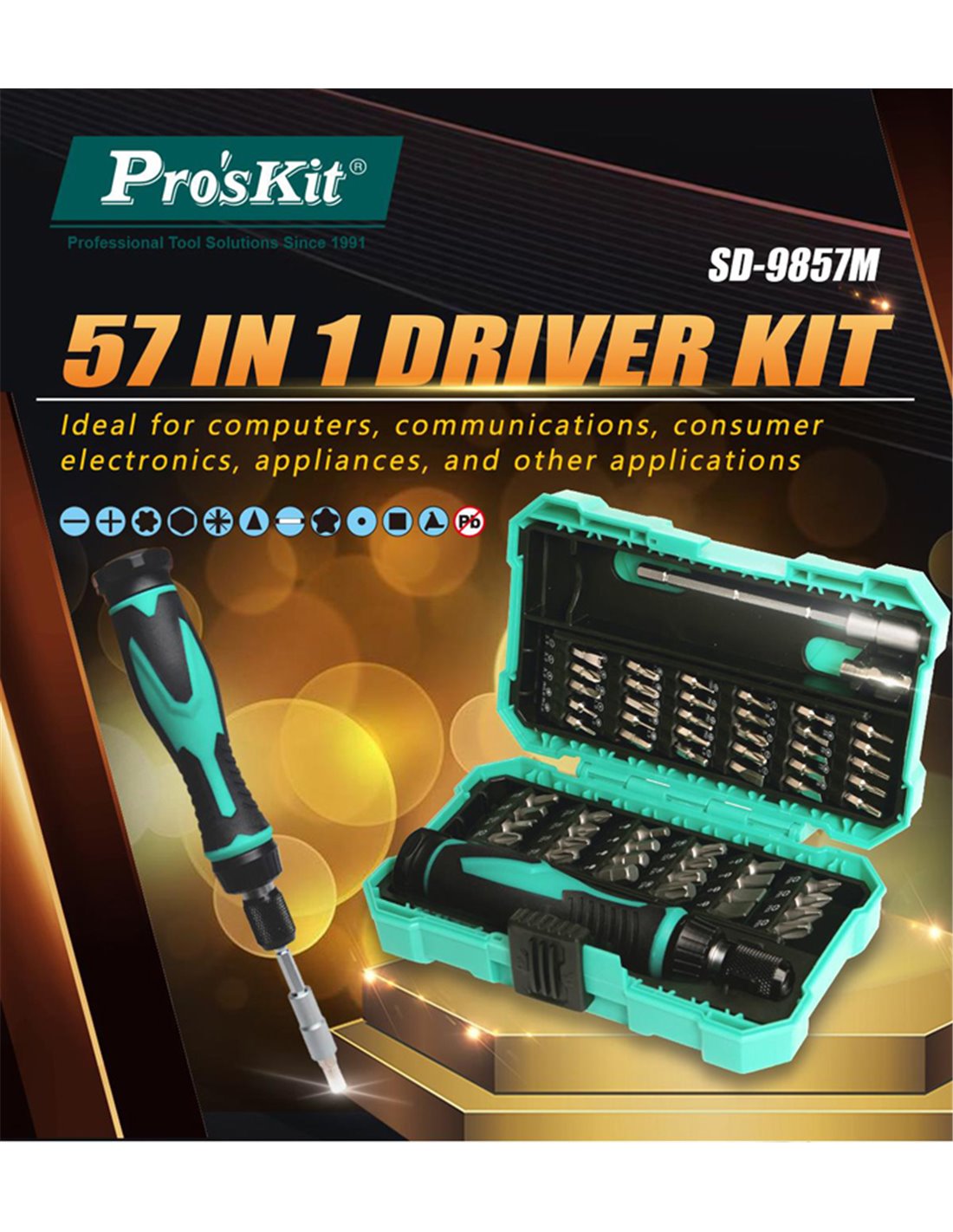 PROSKIT σετ κατσαβίδι ακριβείας SD-9857M με 54 μύτες, με θήκη, 57τμχ