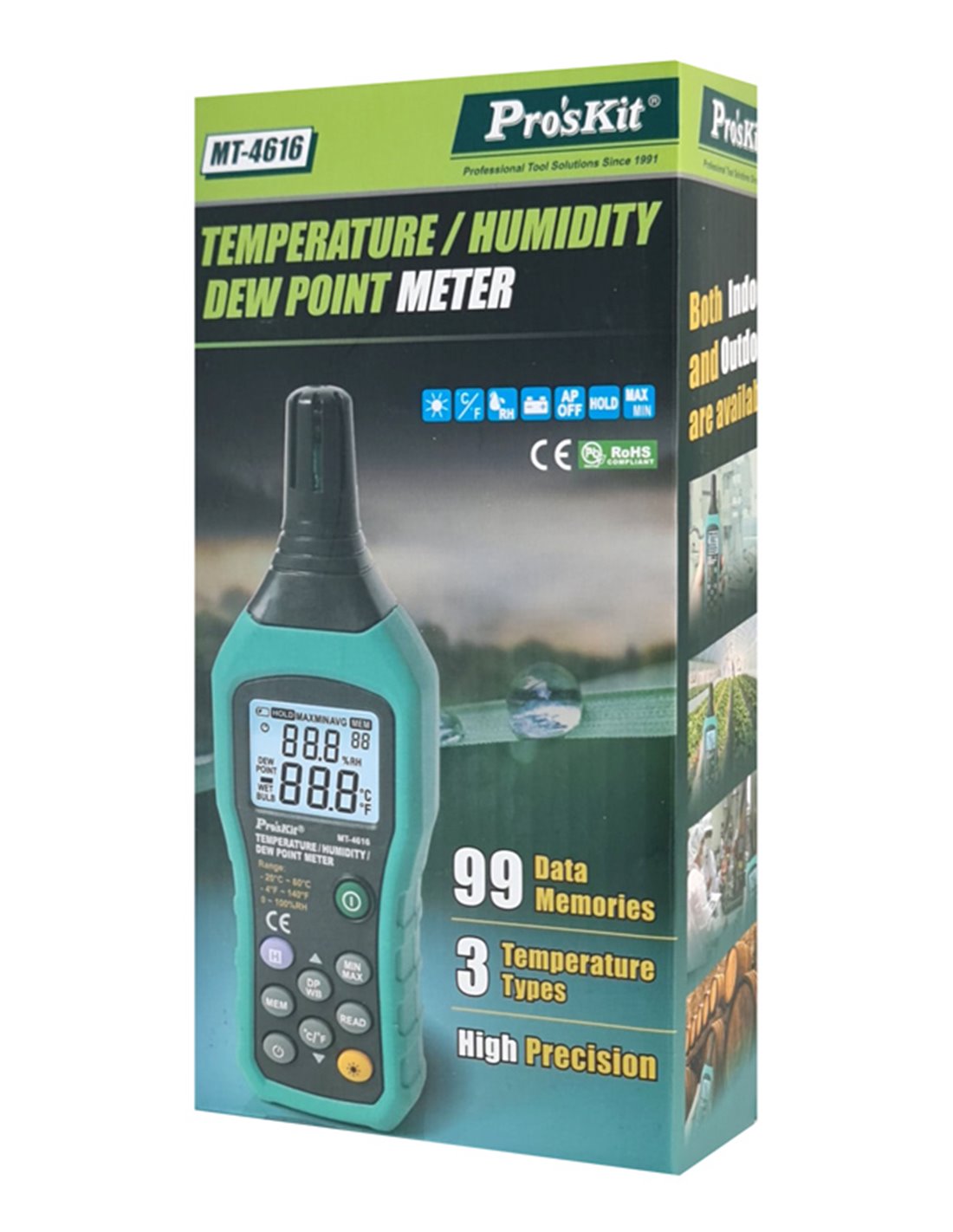 Το MT-4616 από την PROSKIT είναι ένα ψηφιακό θερμόμετρο και υγρασιόμετρο που παρέχει μετρήσεις υψηλής ακρίβειας.
