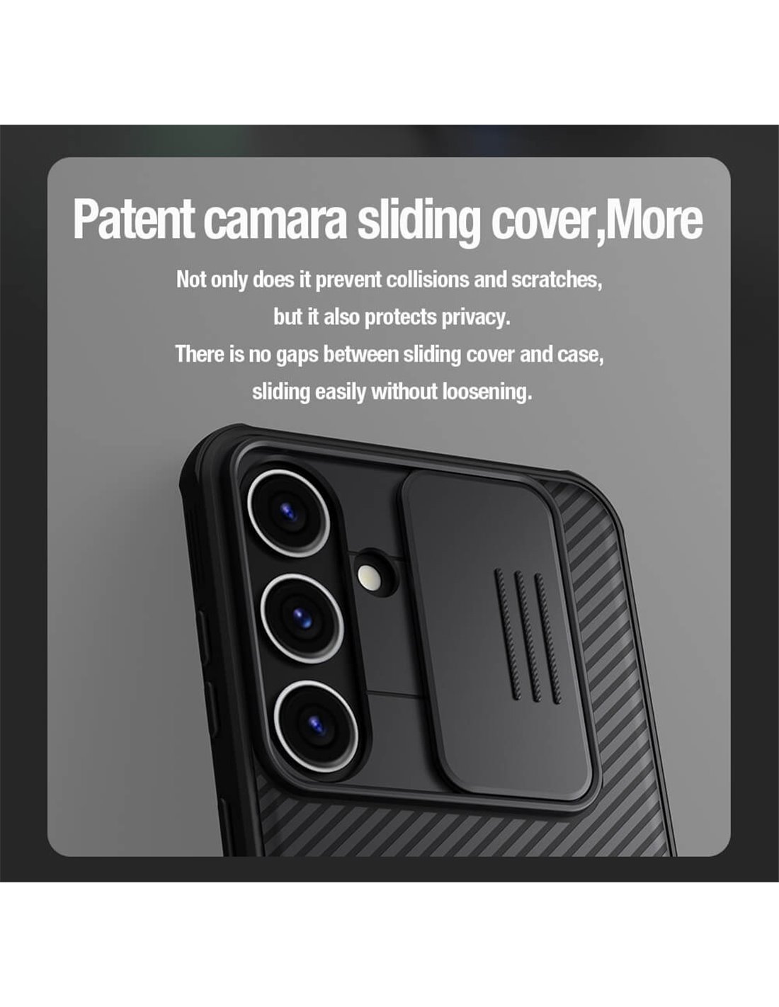 Η θήκη της σειράς CamShield Pro της Nillkin χαρακτηρίζεται από την ενισχυμένη προστασία που προσφέρει, το σκληρό υλικό κατασκευής της με την ανάγλυφη επιφάνεια, αλλά και την έξτρα προστασία των καμερών και της ιδιωτικότητας σας, χάρη στο συρόμενο καπάκι της.