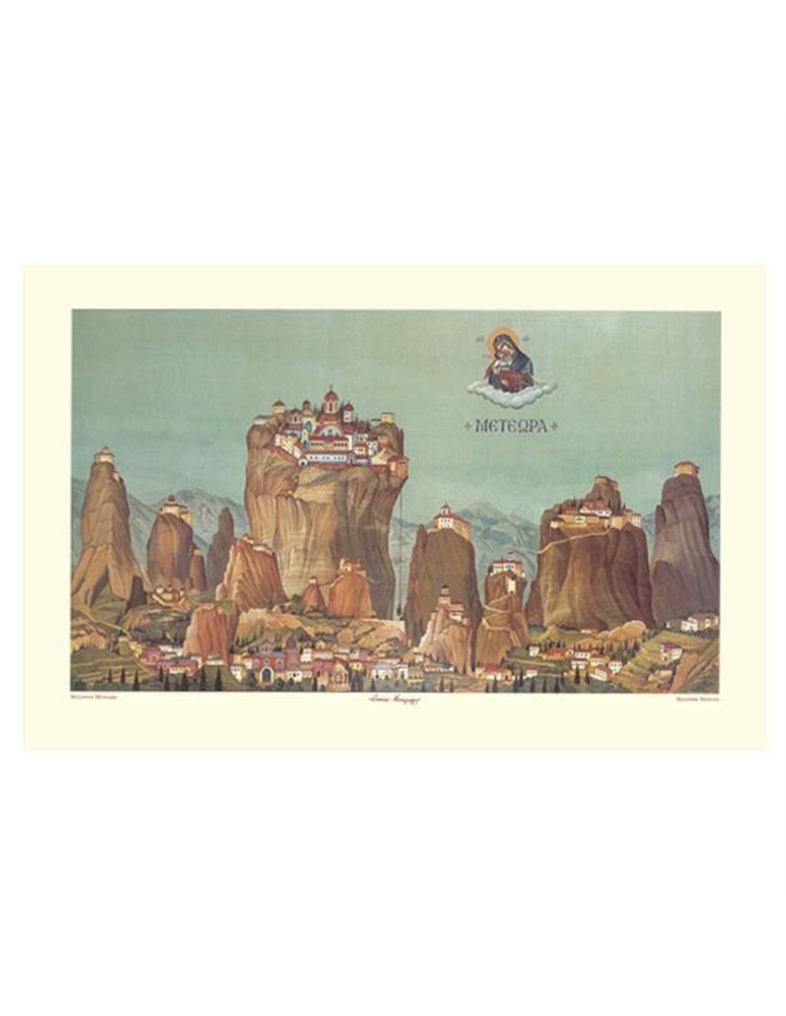 Λιθογραφία Βυζαντινών Μετεώρων. Εκτύπωση σε πολυτελές χαρτόνι. Διαστάσεις: 30x40εκ.