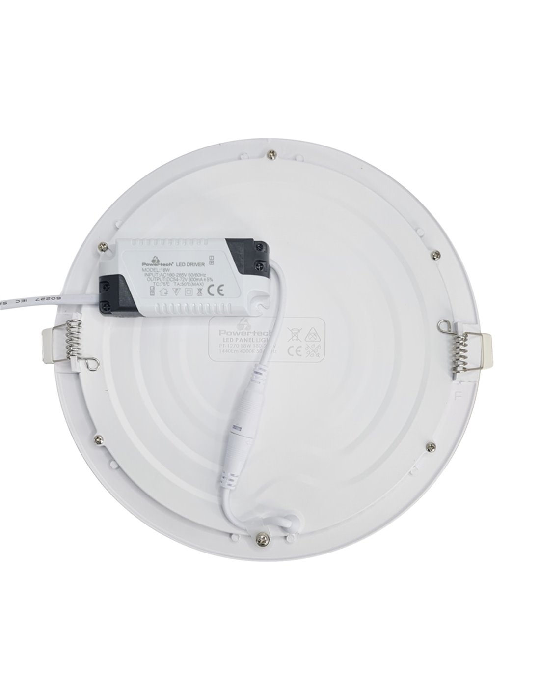 POWERTECH LED panel PT-1270 χωνευτό, 18W, Φ22cm, 4000K, 1440lm, λευκό