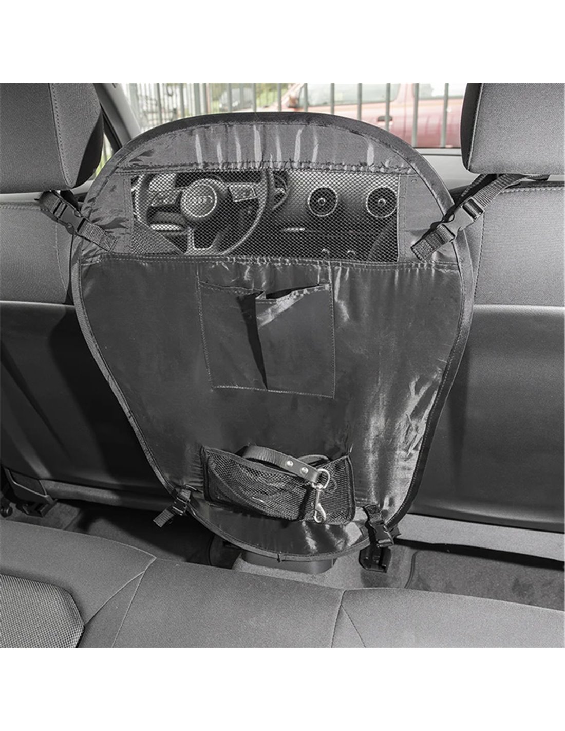 Προστατευτικό διαχωριστικό αυτοκινήτου για σκύλους από την ProPlus. Τοποθετείται εύκολα στο άνοιγμα μεταξύ των μπροστινών καθισμάτων με ιμάντες.