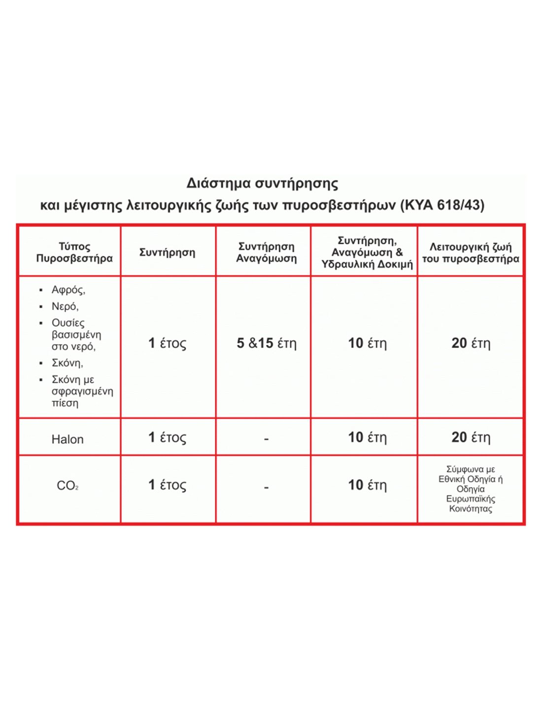 Διάστημα συντήρησης και μέγιστης ζωής των πυροσβεστήρων (ΚΥΑ 618/43)