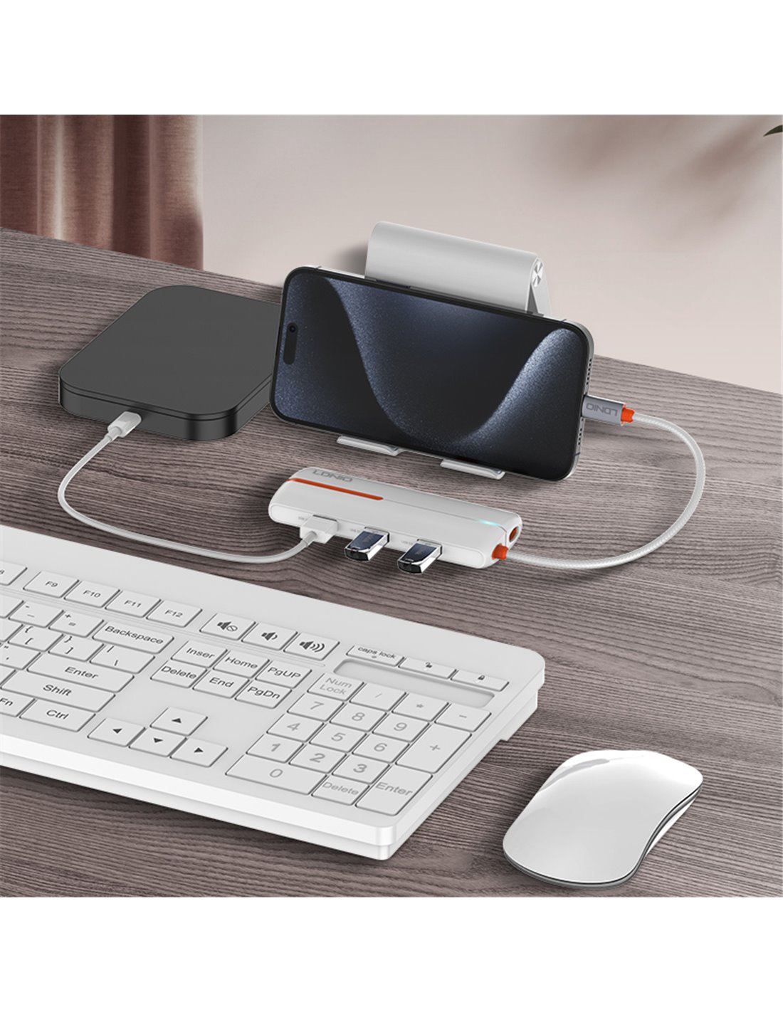 LDNIO USB hub DS-26U με θύρα δικτύου, 6 θυρών, USB-C σύνδεση, 100W PD, λευκό