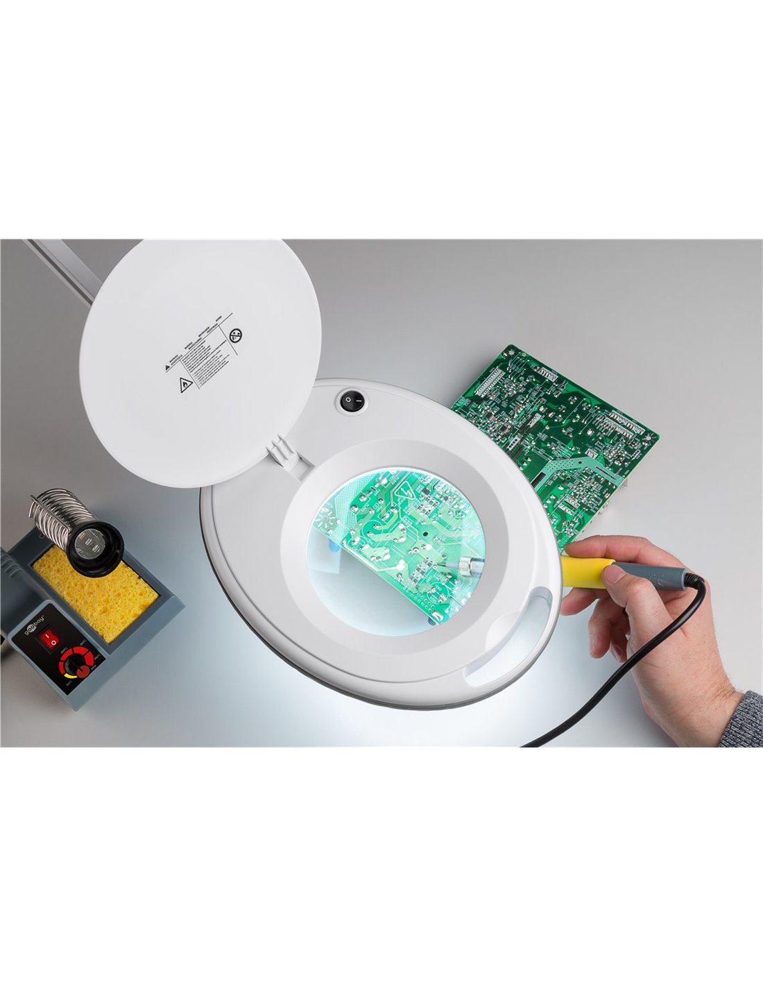 Μεγεθυντικός φακός της Goobay διαμέτρου 127mm, με 3 διόπτρες και μεγέθυνση 1.75x. Διαθέτει προστατευτικό καπάκι για την κάλυψη του φακού όταν δεν χρησιμοποιείται και φωτιστικό δακτύλιο με 60 SMD LED υψηλής απόδοσης για άνετη εργασία ακόμη και σε σκοτεινά μέρη.