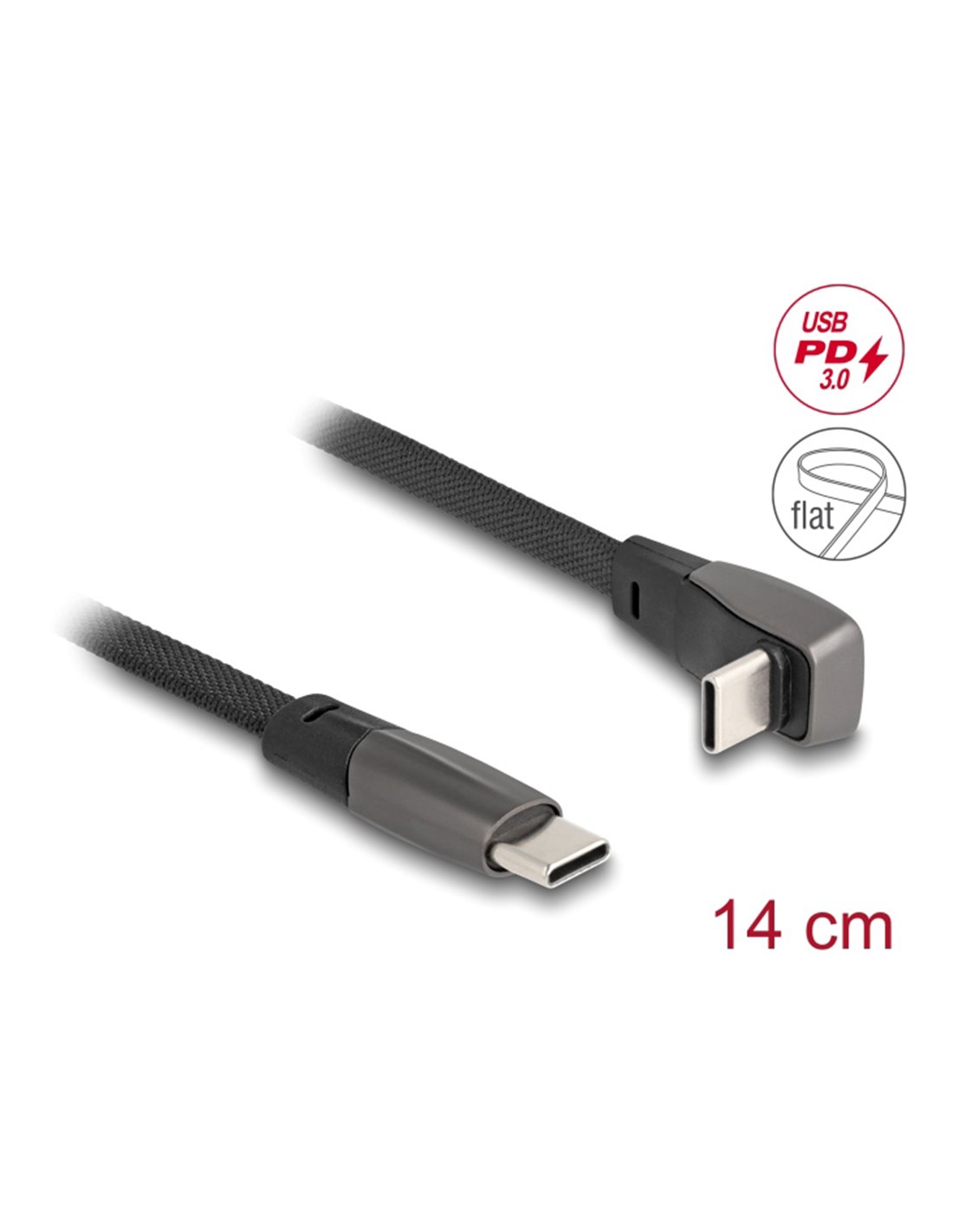 DELOCK καλώδιο USB-C 80750, 60W, flat, γωνιακό, 480 Mbps, 14cm, μαύρο