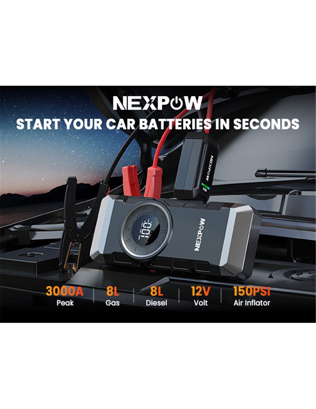 NEXPOW εκκινητής μπαταρίας & συμπιεστής αέρος NP2, 12V/3000A, 150PSI, 12000mAh