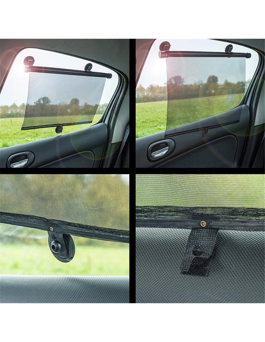 Τοποθετούνται πάρα πολύ εύκολα με χρήση βεντουζών και μαζεύονται αυτόματα. Η συσκευασία περιλαμβάνει 2 κουρτίνες.
