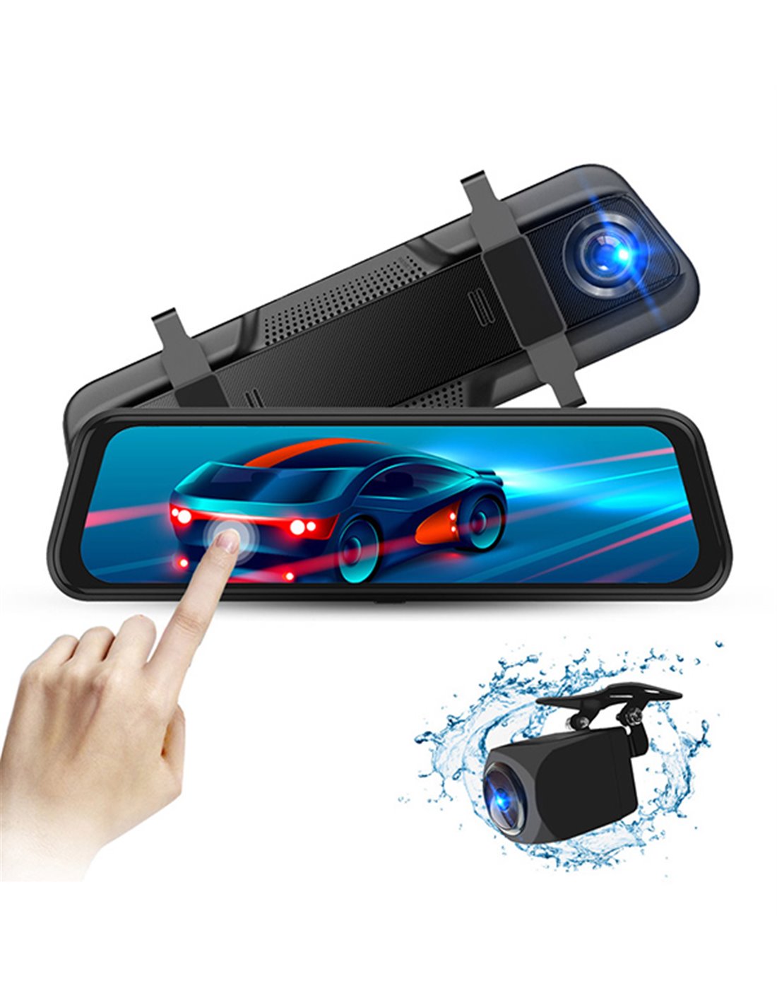 POWERTECH καθρέφτης αυτοκινήτου με κάμερες PT-1330, μπροστινή/οπισθοπορείας, 9.66" οθόνη, 1080p