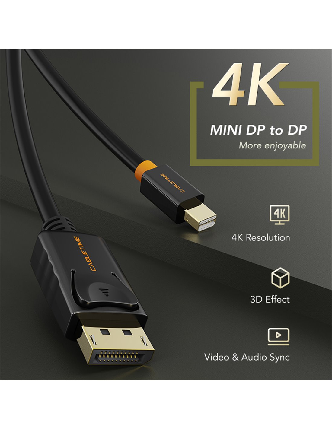 CABLETIME καλώδιο mini DisplayPort σε DisplayPort CT-AV588-02G, 4K/60Hz, 1m, λευκό