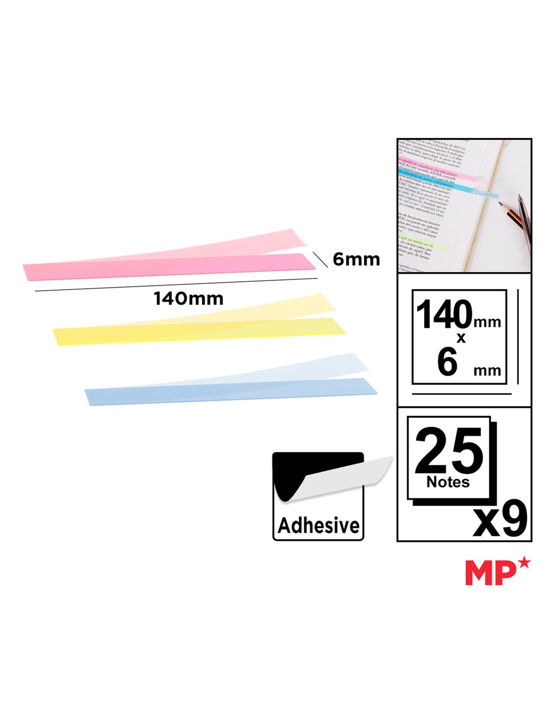MP αυτοκόλλητα χαρτάκια σημειώσεων PN352-02, διάφανα, 140x6mm, 225τμχ