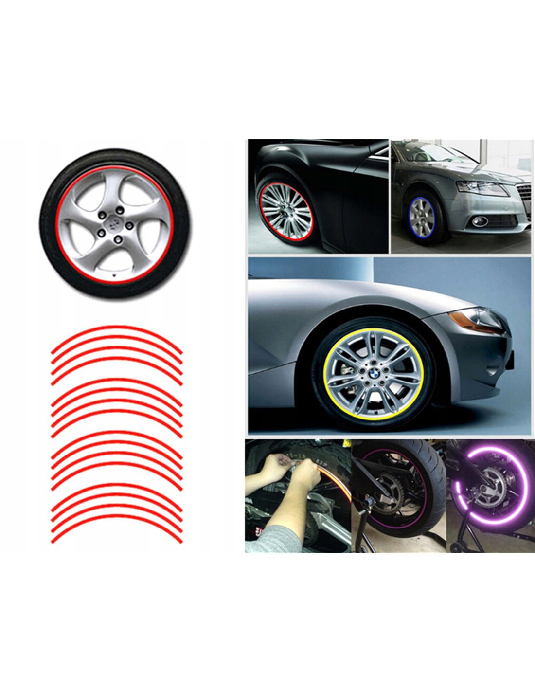 Σετ με 16 ανακλαστικά αυτοκόλλητα για ζάντες αυτοκινήτου ή μοτοσυκλέτας. Αυξάνουν την ορατότητα του οχήματος σας για μεγαλύτερη ασφάλεια όταν οδηγείτε το βράδυ.