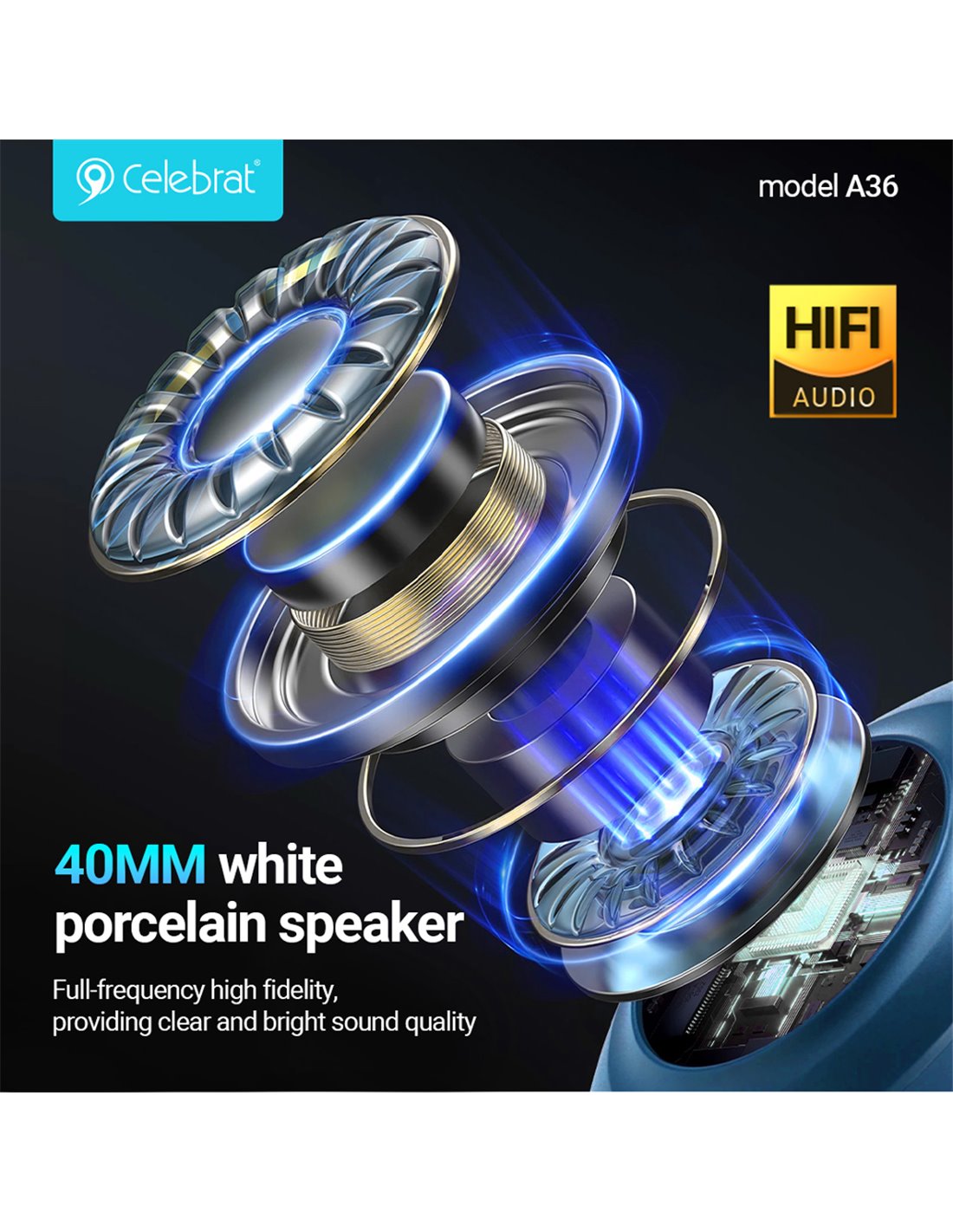 CELEBRAT headphones A36, ασύρματα & ενσύρματα, micro SD, 40mm, 250mAh, μαύρα