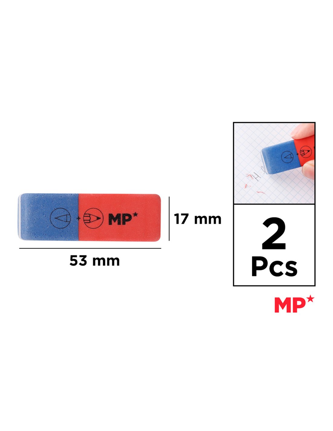 MP γόμα PG191 για μολύβι & στυλό, 17x53mm, 2τμχ