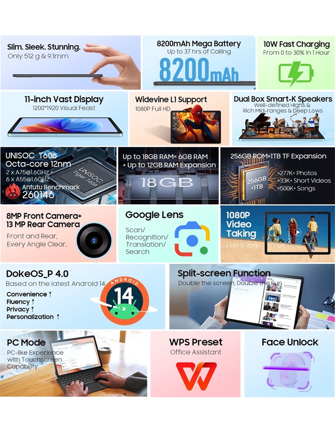 Με 6GB (+12GB virtual) RAM και 256GB ROM για να αποθηκεύετε τα αγαπημένα σας αρχεία, φωτογραφίες και βίντεο. Επιπλέον, προσφέρει την δυνατότητα να επεκτείνετε τον χώρο αποθήκευσης του tablet με κάρτα micro SD έως 1TB.