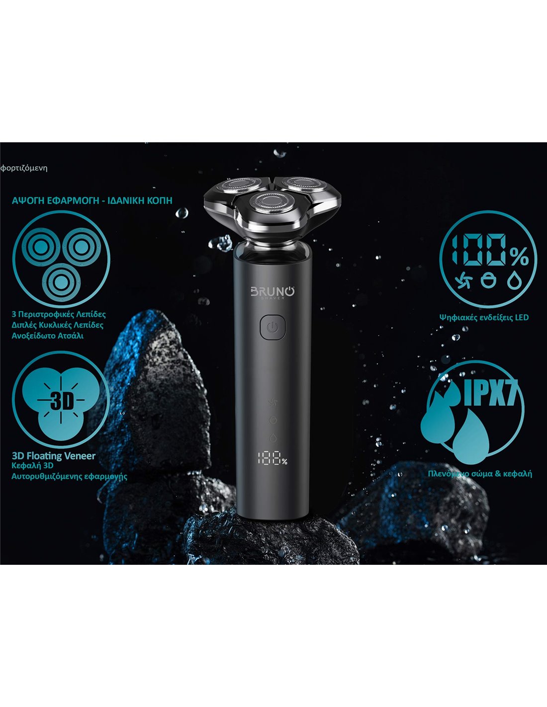 BRUNO ξυριστική μηχανή προσώπου BRN-0223, επαναφορτιζόμενη, μαύρη