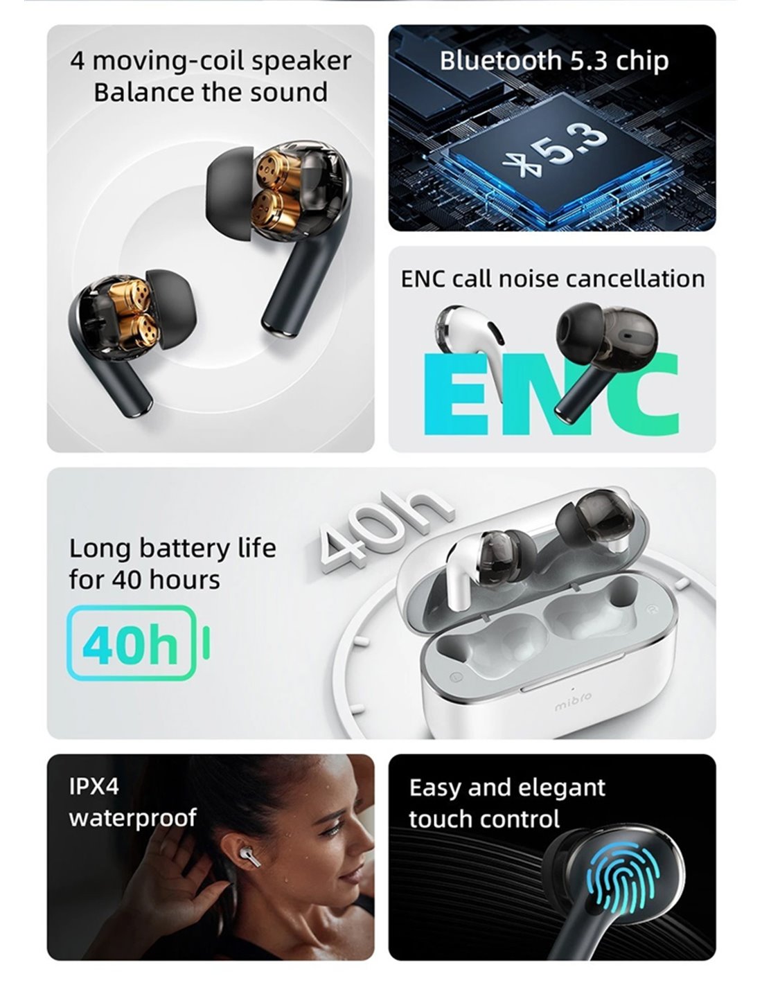 Τα true wireless earphones της Mibro προσφέρουν κορυφαία ποιότητα ήχου και άριστη εφαρμογή στο αυτί. Είναι συμβατά με tablets, smartphones και άλλες συσκευές που διαθέτουν Bluetooth.