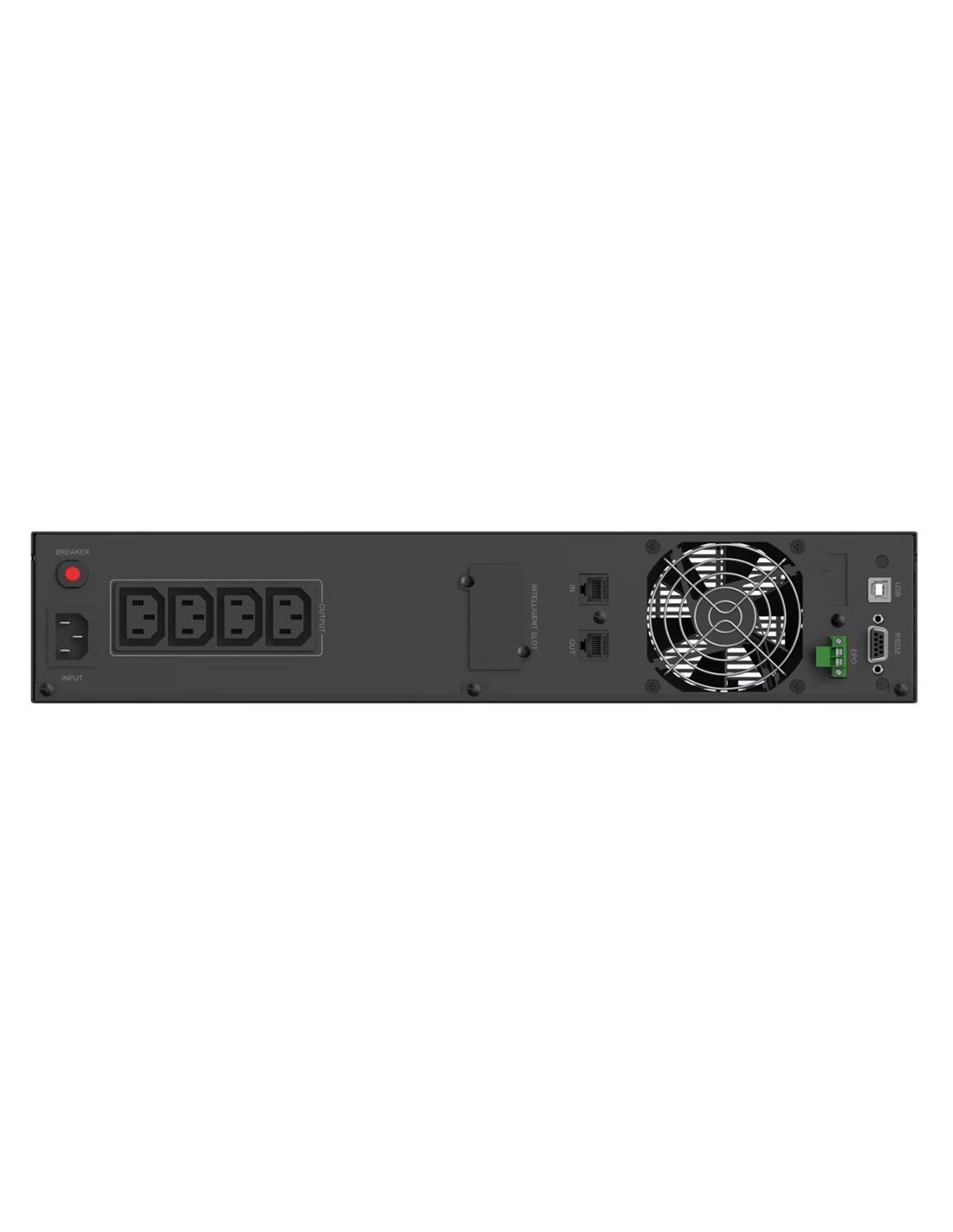 -Θύρες: DC (είσοδος), 4x AC (έξοδος), USB Type B, RS232, 2x RJ45 (IN/OUT)