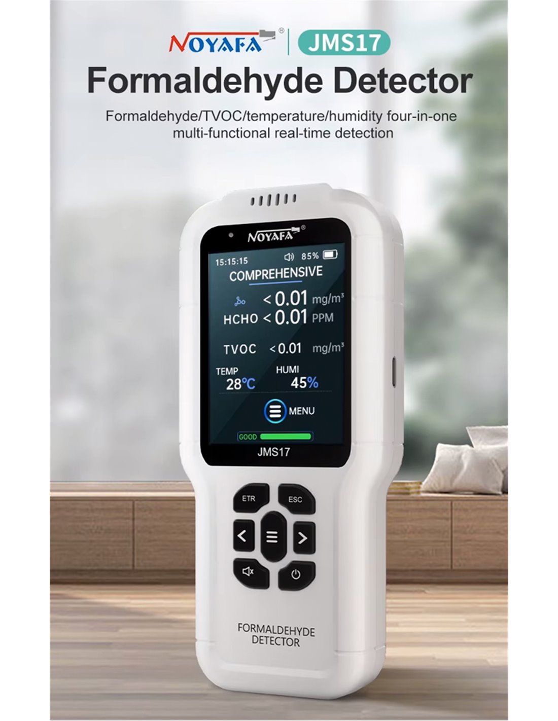 Το JMS17 είναι ένα χρήσιμο εργαλείο που μπορεί να μετρήσει ταυτόχρονα την ποιότητα του αέρα (μετρώντας τη συγκέντρωση της φορμαλδεΰδης και της οργανικής ύλης), τη θερμοκρασία και την υγρασία περιβάλλοντος.