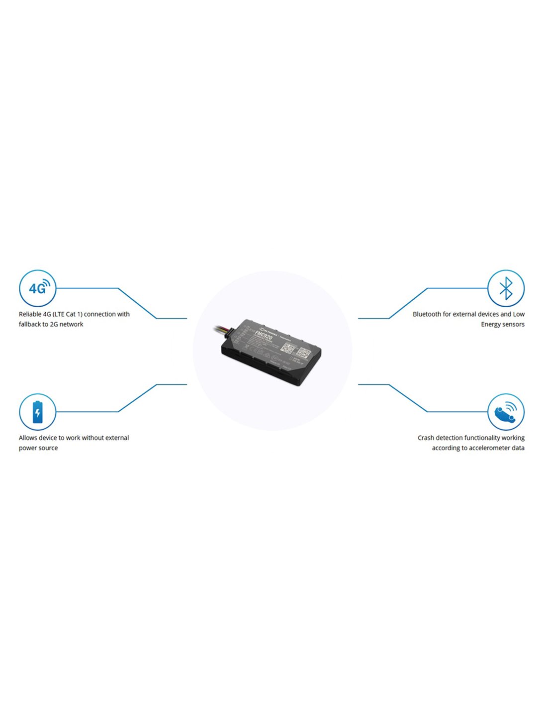 -Configuration and firmware update: FOTA Web, FOTA, Teltonika Configurator (USB, Bluetooth), FMBT mobile application (Configuration)