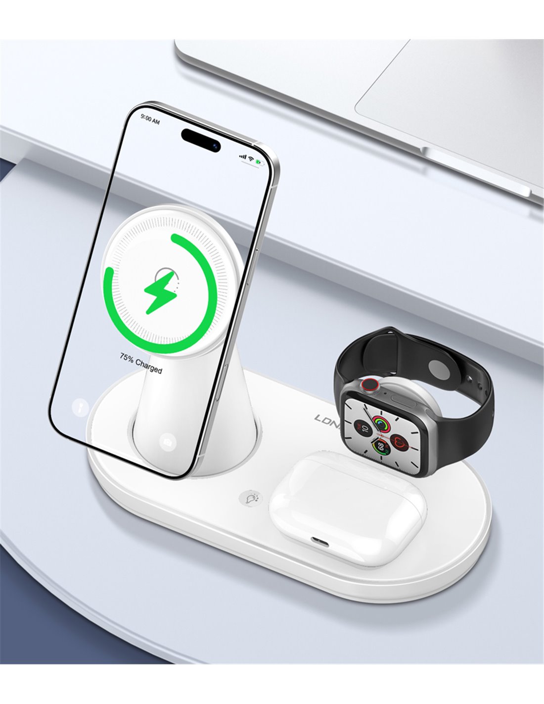 LDNIO ασύρματος φορτιστής WL01 με LED φωτισμό, 3 σε 1, 15W, λευκός