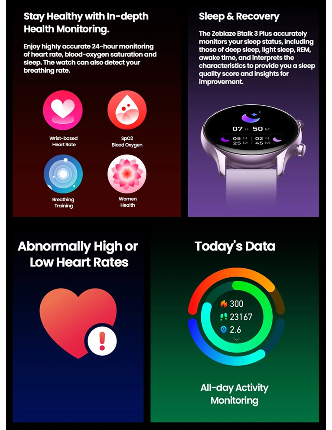 ZEBLAZE smartwatch Btalk 3 Plus, heart rate, 1.39" IPS, μαύρο