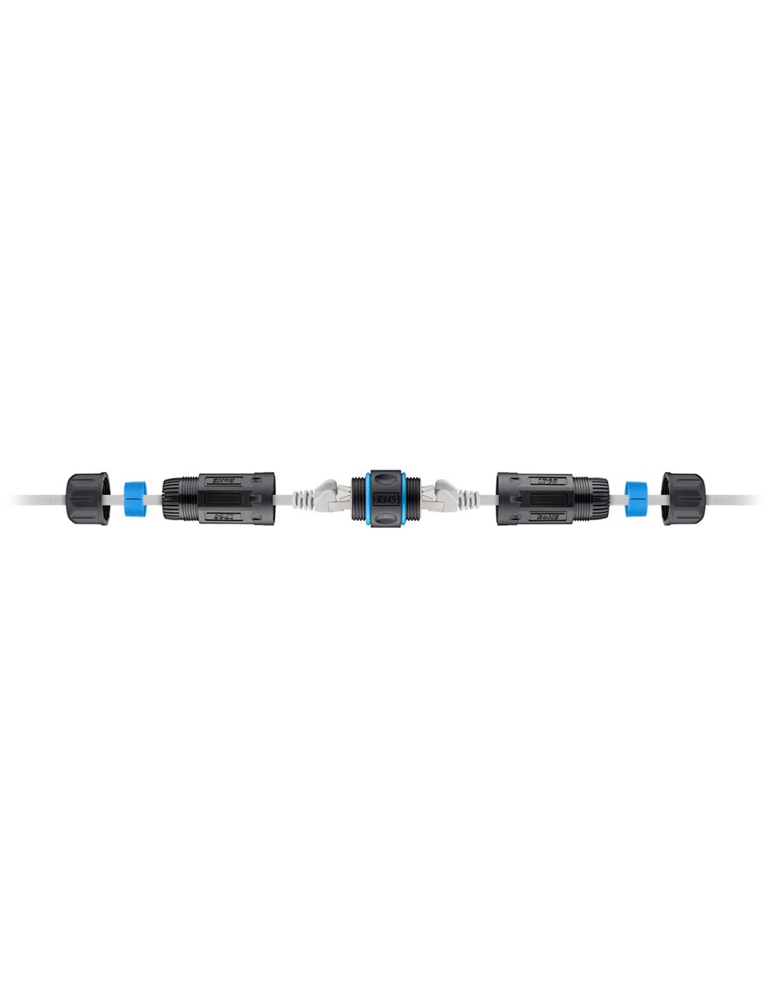 Αδιάβροχος σύνδεσμος καλωδίων δικτύου, ιδανικός για συνδέσεις δικτύου σε εξωτερικούς χώρους. Διαθέτει αδιαβροχοποίηση επιπέδου IP68, προστατεύοντας την συνδεσμολογία από σκόνη και νερό.